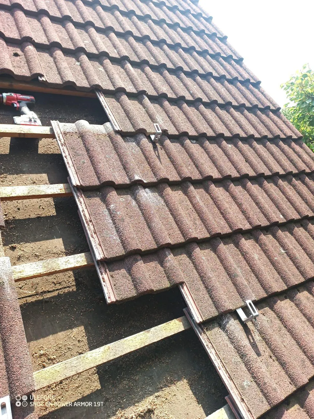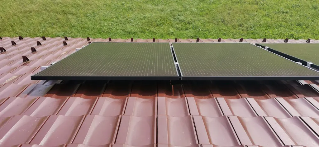 Dachhaken zur Befestigung von Profilen für Photovoltaikanlagen auf Dächern, die mit Keramik- und Betonziegeln gedeckt sind. Er gewährleistet die Stabilität der gesamten Konstruktion.
